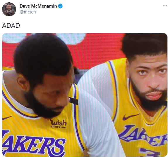 湖人随队记者Dave McMenamin晒出庄神和浓眉同框画面,发推写道:两个AD(浓眉名字首字母是AD,巧了,庄神名字首字母也是AD)
