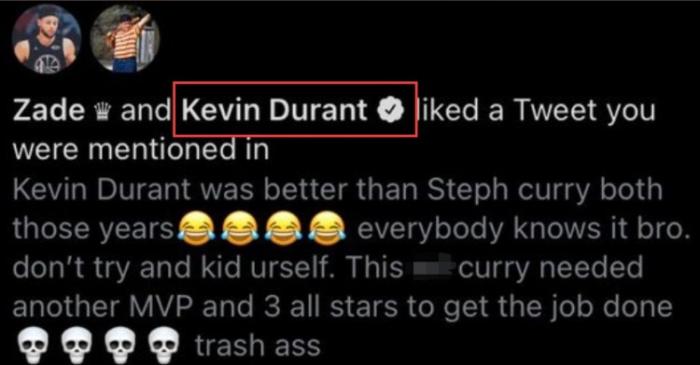 这很杜兰特!网友称勇士两连冠时库里全靠KD,杜兰特点赞后秒删!