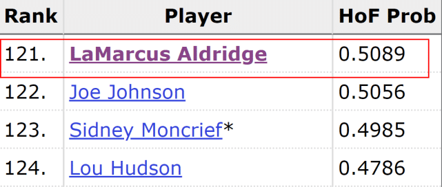 来源:24直播网04-16 15:3324直播网讯北京时间4月16日,篮网球星阿尔德里奇因心律不齐问题突然宣布退役,引起热议。不少美媒和球迷开始讨论阿德能否入选名人堂。知名数据网站Basketball-Reference的名人堂入选概率榜上,阿德的入选概率是50.89%,排在第121位。ESPN数据专家凯文-佩尔顿指出了阿德入选的一大障碍。