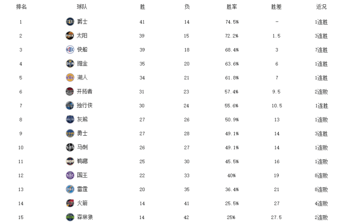 来源:24直播网04-15 15:5024直播网4月15日讯进行的NBA常规赛已经都结束了,今天有多达11支西部球队出战,各队也是有喜有忧,快船7连胜,勇士3连胜反超马刺,森林狼雷霆惨败等等。西部的格局也发生了很大的变化,接下来我们一起来看看西部最新的排名: