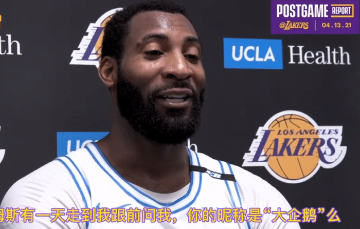 另外德拉蒙德赛后还谈到了自己的绰号“大企鹅”他表示:有一天,詹姆斯走到我身边对我说到:‘哟,你的外号是大企鹅吗?’,我回复他我不知道这是谁给我起的外号,现在湖人队都传开了。我觉着吧,我需要一个比‘大企鹅’更有侵略性的外号哈哈哈!但是小朋友们可以叫我‘大企鹅’。