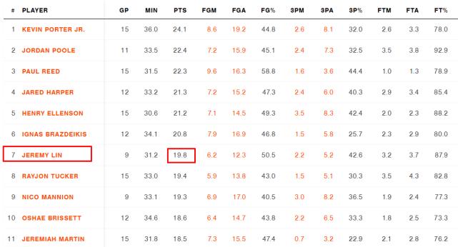 数据显示,林书豪在G联赛打了9场常规赛,场均贡献19.8分,排名G联赛得分榜第7位。就像斯坦恩说的那样,排名前11位的球员里只有他还没在本赛季和NBA球队签约。为什么NBA球队不愿意给状态不错的林书豪一份合同呢?
