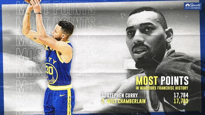 勇士生涯17818分,超越张伯伦位列勇士队史第一。