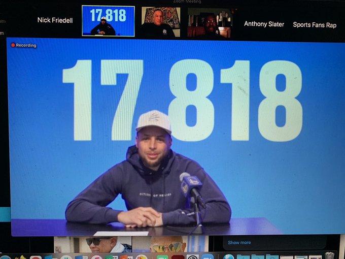害羞了!妻子晒图+名宿狂赞,库里坐生涯得分屏幕前采访:有点尴尬!