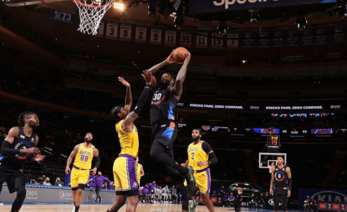 来源:24直播网04-13 11:0224直播网4月13日讯 今天NBA常规赛结束了一场焦点战,湖人客场96-111不敌尼克斯吃到败仗。这场比赛詹姆斯和浓眉哥依旧缺席,庄神德拉蒙德拿下3分10板1断1帽的数据,整体的表现相对一般,而且在比赛中他的篮下防守不到位,失误也偏多。