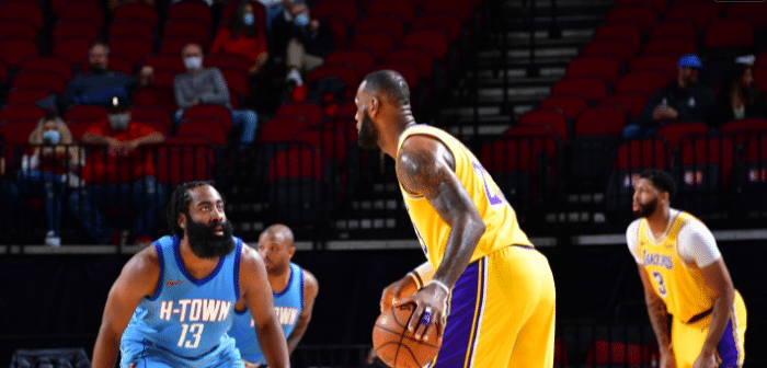 下半场比赛哈登的表现依旧不佳,半场比赛5中1仅得3分,伍德在本节贡献9分4篮板,湖人方面浓眉哥在本节同样贡献9分4篮板,三节战罢双方分差仍然保持在20分以上,末节比赛双方都派上了替补阵容,最终湖人轻松赢下了比赛!