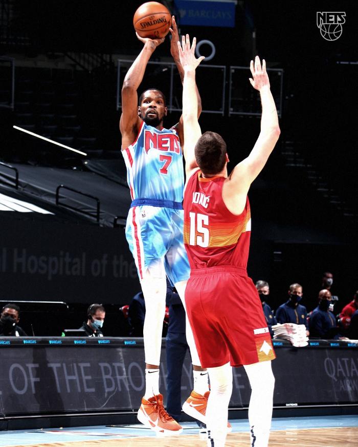 生涯至今杜兰特总共出战856场常规赛,场均27分无愧联盟超级得分手,如今杜兰特改披篮网7号战袍,带领球队为更高的目标而战;可惜欧文无故离队连续缺席比赛,真是坑苦了杜兰特,毕竟杜兰特才从跟腱断裂的重伤中伤愈归来,杜兰特还需要更多的时间适应比赛。