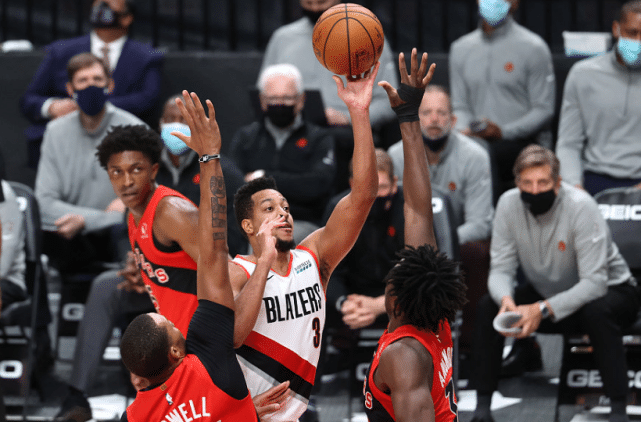 在上一场比赛中,猛龙做客挑战勇士,全队在防守库里方面做到了极致,逼迫两届MVP仅有16中2的准星。然而最后时刻,猛龙防住了库里,却对达米安李下手犯规,最终1分惜败。此役来到波特兰,猛龙在首节比赛便32-21领先11分,第二节中段更是领先到17分。不过随后开拓者连续追分。下半场,猛龙依然握有10分左右领先。但到最后时刻,安东尼大爆发连得8分,利拉德也三分命中。