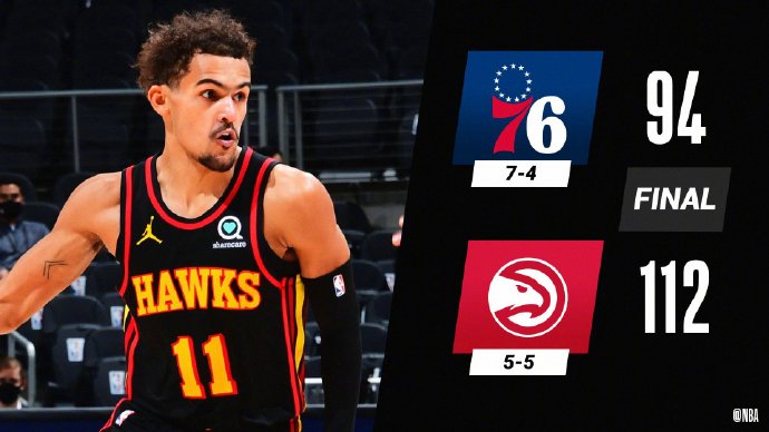 老鹰109-94大胜76人 特雷-杨26+8 恩比德24+11