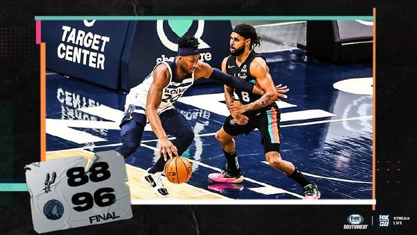 森林狼96-88险胜马刺 拉塞尔27分 比斯利24分