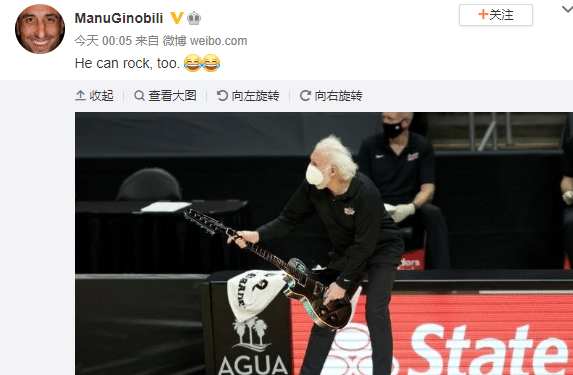 在国内社交媒体上,吉诺比利直接恶搞,他在波波维奇的手上PS了一把电吉他,配文:He can rock, too.(他还可以摇滚)还有两个笑哭的表情。