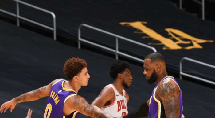 下半场比赛公牛一度拉开比分,不过很快湖人就追上了比分,拉文在第三节再次得到8分3篮板,温德尔卡特在本节贡献12分,湖人方面詹姆斯单节贡献10分2篮板3助攻,末节比赛开始,湖人一度拉开比分,不过随后詹姆斯体能亮起红灯,最后5投仅1中,公牛也借机缩小比分,不过最后时刻施罗德站了出来,个人连续得分,湖人最终117-115赢下了比赛