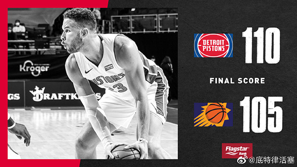 末节,佩恩上篮打成,奥斯卡补篮命中,约翰逊暴扣打停活塞,随后萨迪克-贝命中三分,艾顿勾手打成2+0,格兰特两罚一中,活塞87-88落后。格里芬勾手反超,保罗连送助攻,约翰逊三分命中,布里奇斯暴扣打成,太阳最后1分29秒93-89再度领先。格兰特两罚全中,普拉姆利暴扣追平,布克错失绝杀。