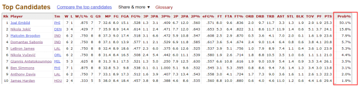 数据网站更新MVP排名!恩比德居首约基奇第二,詹皇第五哈登第十