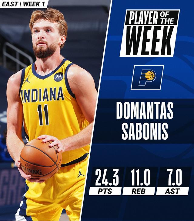 来源:24直播网12-30 20:01NBA新赛季战火重燃,经过一星期的角逐,各支球队的状态和近况大致能看出个七七八八。经过揭幕战、年终大战等重要战役的洗礼,首周的周最佳球员评选出炉,印第安纳步行者的多曼塔斯-萨博尼斯与新奥尔良鹈鹕的布兰登-英格拉姆分别当选。