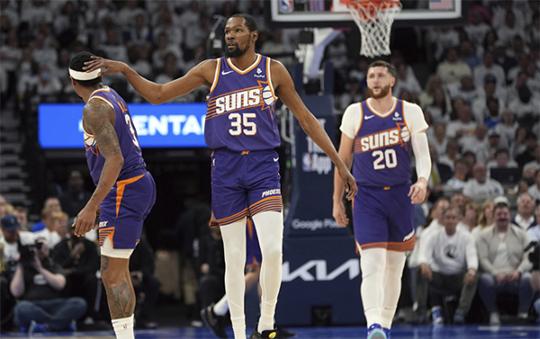 末节,太阳三巨头带队却被森林狼15-5拉开分差,7分51秒太阳落后17分,沃格尔无奈喊掉球队的最后一个暂停;森林狼球迷身穿嘲讽布克的T恤,太阳落后还爆发不和谐一幕,据太阳记者报道,暂停后比尔暴怒并且冲着沃格尔怒吼;杜兰特继续带队抵抗,无奈分差太大,2分17秒布克犯满毕业,太阳撤下主力提前认输。