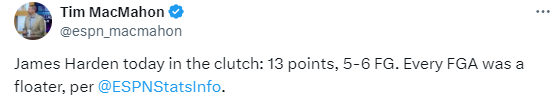 快船队记JoeyLinn则表示:考虑到哈登本来是这支球队的三当家,你真的没法要求他在这轮系列赛中做到更多了。