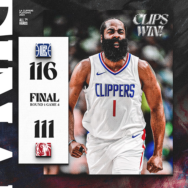 下半场快船第三节进攻停滞,单节16-29被追回13分,这一节哈登仅仅出手1次,没有得分进账,三节打完快船领先还剩4分;末节哈登在进攻端发力,与乔治带队重新领先到两位数,之后欧文带队12-1迅速扳平比分,关键时刻哈登连续抛投得分,与欧文对飚的同时带队拿下胜利。