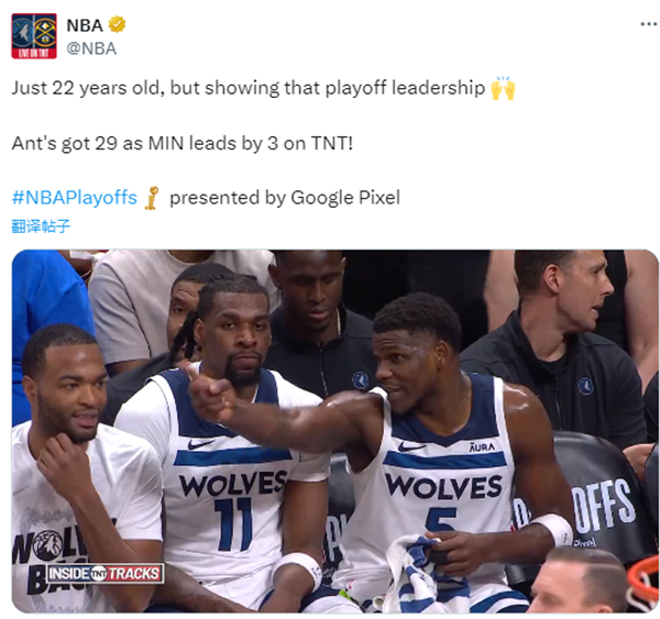 来源:24直播网05-05 14:0024直播网讯 北京时间5月5日,西部半决赛森林狼G1客场击败掘金,总比分1-0领先,爱德华兹狂砍43分7篮板以及末节12分带队掀翻卫冕冠军,但别忘了夸赞森林狼超级第六人纳兹-里德,替补上半场23分钟,11投7中拿到16分4篮板3助攻,末节独砍14分打爆掘金替补席。