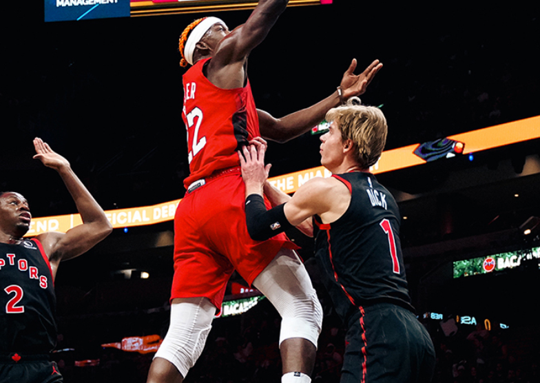 上半场热火凭借第二节35-24的攻势反超比分,半场打完58-51领先猛龙7分,期间巴特勒登场17分钟,4投1中仅仅贡献6分3篮板3助攻,在反击中完成空接暴扣;希罗半场12分和约维奇11分扛起球队的进攻大旗。