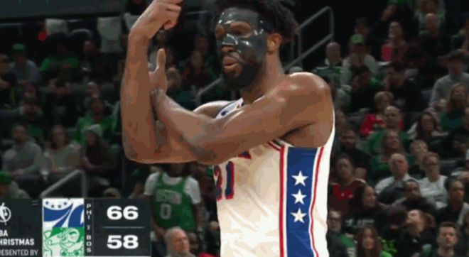 76人恩比德惹争议,赛场现下流动作领75000美元罚单 本赛季评奖无望