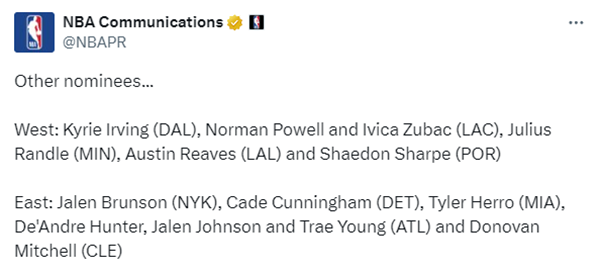 周最佳花落谁家?NBA官方宣布亚历山大、马克西当选,欧文里夫斯获提名
