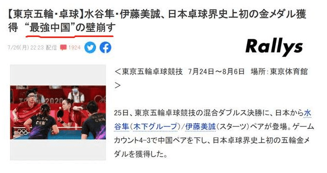 比赛结束之后,日媒也疯狂的报道,总结起来就是这是日本乒乓球历史上的首枚金牌,还是直接从中国队身上夺得的,是重大的胜利。还有报道称这场0-2落后的大逆转以及决胜局阶段的8-0开局,是令人热血沸腾的。