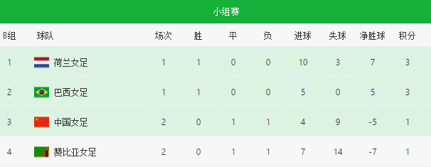 这样中国女足无缘拿下胜利,错失关键战的胜利,末战想要赢球的话,必须要从荷兰队的身上拿分了,但联想到首战荷兰队10-3大胜赞比亚,中国女足和对手的实力差距还是很大的,想要晋级不仅要争取力压赞比亚,还得希望在和其他小组的第三名比较中占据前两名。也希望接下来的中国女足可以加油,争取逆袭晋级到八强。