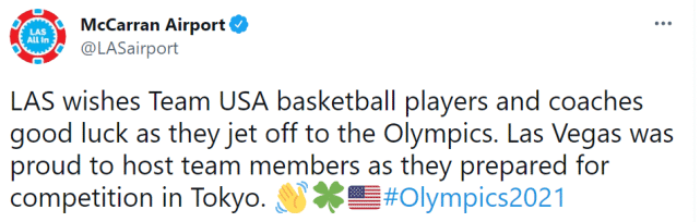 来源:24直播网07-20 20:4624直播网讯 北京时间7月20日,美国男篮飞抵东京国际机场。他们乘坐的5Y8555号航班,原定在拉斯维加斯当地时间下午13点起飞,但因故延误了3小时18分钟,直到16点18分才起飞。他们起飞时,拉斯维加斯机场还发文祝福美国男篮的球员和教练在东京好运。经过10小时24分钟的飞行,美国男篮在当地时间晚18点42分抵达东京。