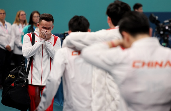 中国体操男团错失金牌太遗憾,赛后肖若腾泪洒现场。
