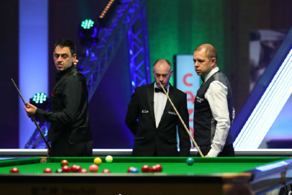 第5局,霍金斯手感继续下滑,奥沙利文又打出单杆63分,并通过几次上手,69-0连续2局零封霍金斯,奥沙利文将比分追成3-2。第6局,奥沙利文延续好手感,他打出本次比赛的第3杆50+(61分),66-33再扳一局,百分点3-3。第7局,奥沙利文单杆94分制胜,94-0再胜一局。第8局,巴里·霍金斯以80分零封罗尼·奥沙利文,将比分改写成4-4结束第一阶段,将比赛拉回同一起跑线上。