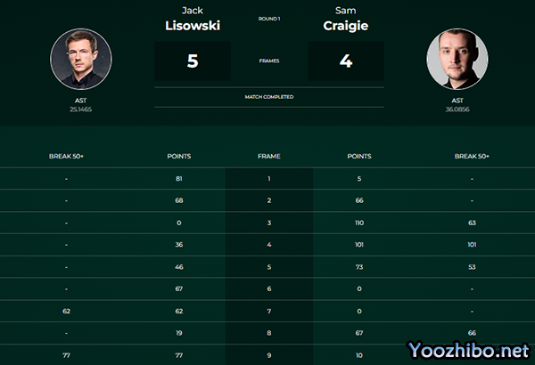 北京时间10月11日,2023斯诺克武汉公开赛第3轮中,利索夫斯基对战山姆-克雷吉,利索夫斯基单杆打出62分和77分以大比分5-4险胜山姆-克雷吉,晋级下轮!