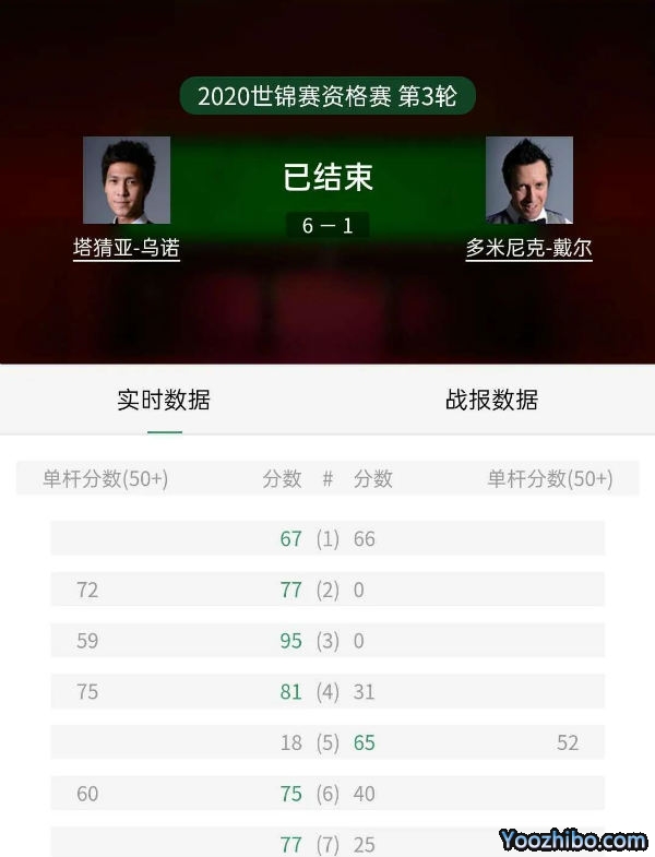 [优酷视频]2020斯诺克世锦赛资格赛 塔猜亚-乌诺vs多米尼克-戴尔 全场录像回放