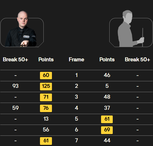 第二局:斯莱瑟状态出色,打出单杆高分,以 125:5 的大比分优势拿下此局,扩大了领先优势。