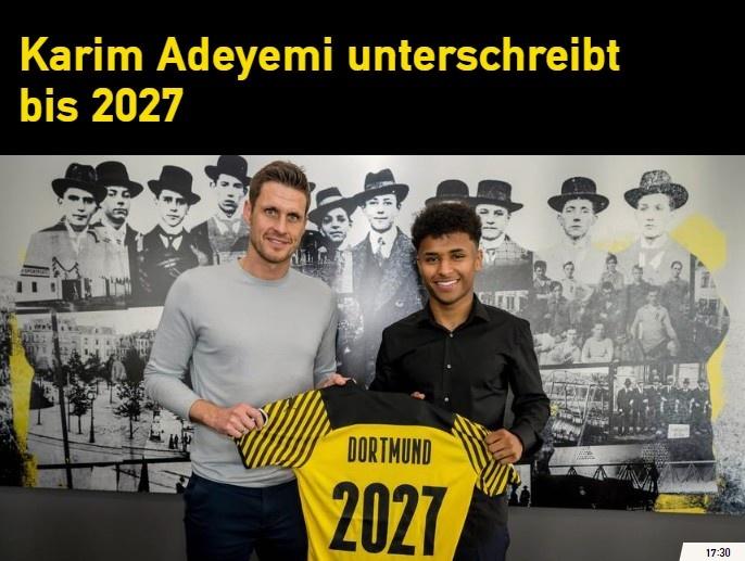 24直播网05月11日讯 多特蒙德官方消息,俱乐部签下萨尔茨堡红牛的德国前锋阿德耶米,双方签约至2027年。