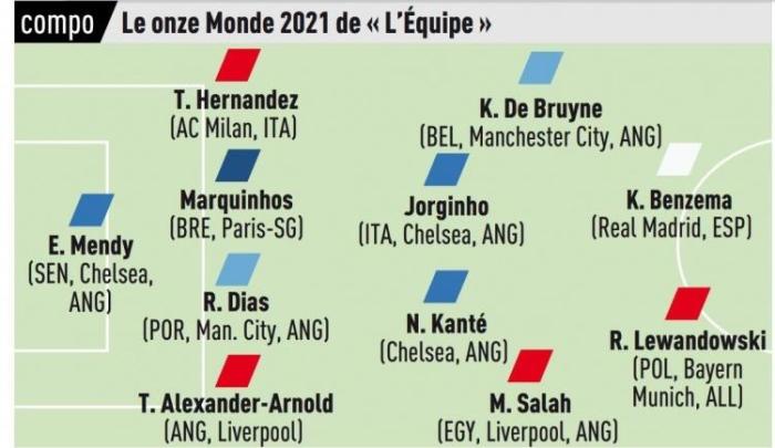 24直播网01月05日讯 ,《队报》评选了2021年最佳阵容,其中本泽马、莱万搭档双前锋,梅西、C罗无缘入选。