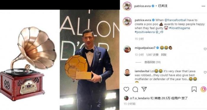 埃弗拉认为这很可笑,他表示:“《法国足球》内疚了,他们为了让人们开心,给莱万创造了这个屎一样的奖项,真是小丑。”