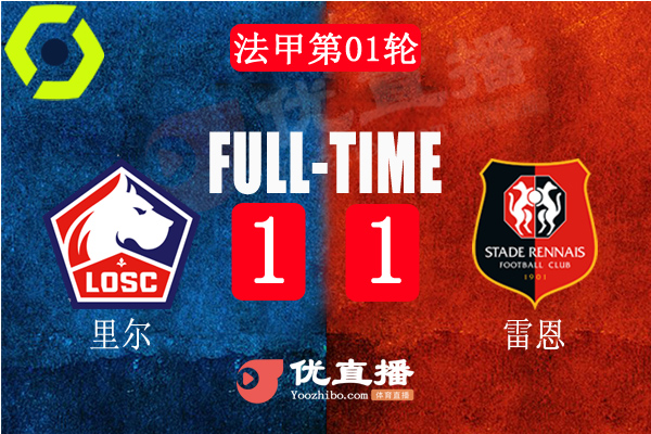 24直播网讯 北京时间2020年08月23日03点进行的法甲第1轮比赛,里尔主场迎战雷恩。里尔以1:1的比分,与雷恩战成平局。
