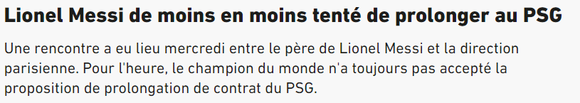《队报》表示,梅西不理解为什么有他和内马尔这样的球员在球队,还要竖立姆巴佩作为球队的核心。不过在公开场合,梅西一直给予姆巴佩称赞。
