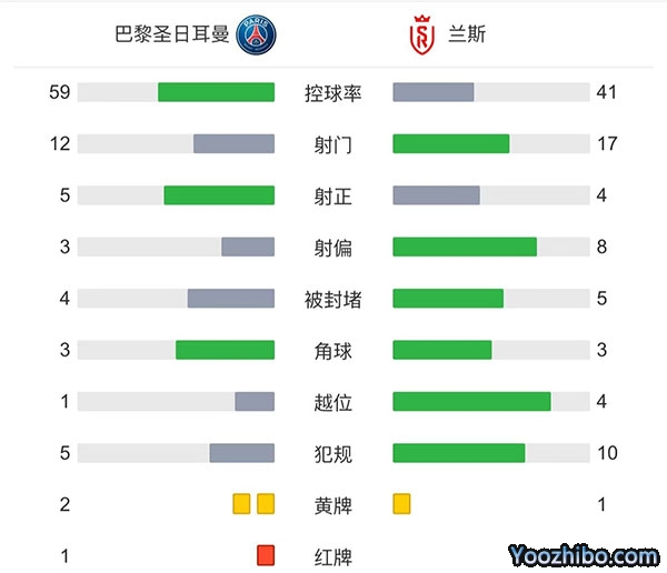 全场比赛结束,最终巴黎圣日耳曼主场1-1战平兰斯。