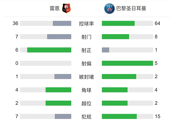 全场比赛结束,最终巴黎客场0-1不敌雷恩。