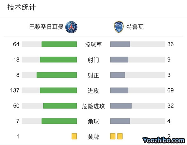 全场比赛结束,巴黎圣日耳曼2-2特鲁瓦。