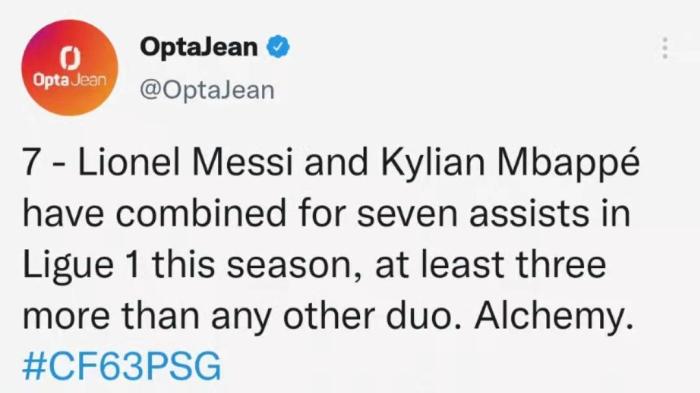 越来越默契!梅西姆巴佩法甲相互助攻高达7次