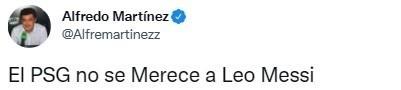 西班牙记者Miquel Blazquez发声力挺梅西:“在巴黎,梅西遭受满场嘘声,但事实上这位阿根廷的历史和冠军数比整个俱乐部都多。我们需要更多的记忆和尊重,有些人很快就忘记了梅西作为一名足球运动员所取得的一切成就。”名记Alfredo Martínez更是直言,巴黎圣日耳曼配不上梅西!