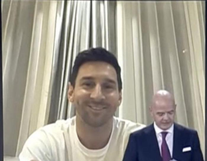 在家中连线颁奖现场时,梅西笑容满面,据了解,他还在私底下祝贺了莱万获奖。