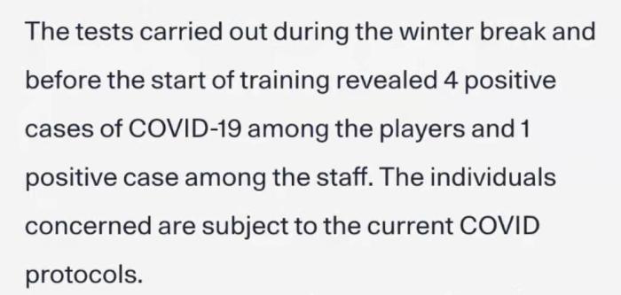 巴黎官方:4名球员和1名工作人员新冠检测呈阳性