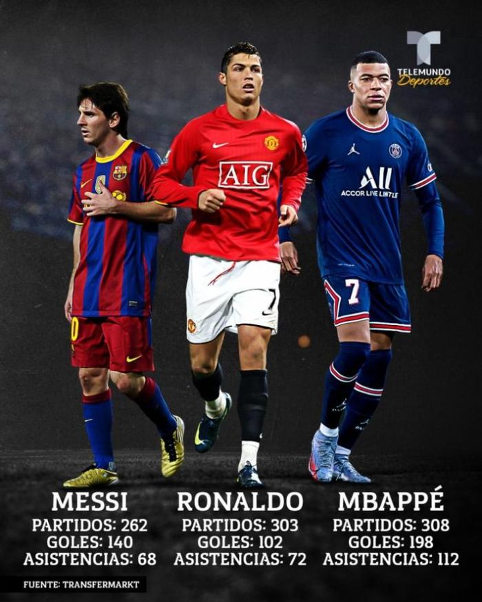 24直播网12月26日讯 据德国转会市场网数据统计,23岁的姆巴佩数据已超过同年龄的梅西和C罗。