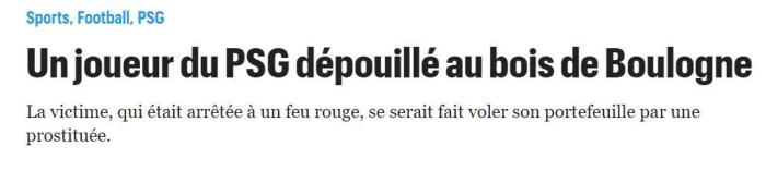巴黎人报:一位巴黎球员遭异装癖抢劫,衣服被扒