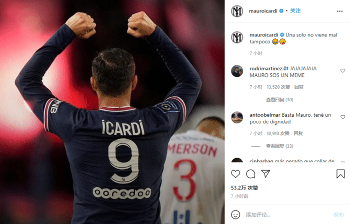 今天伊卡尔迪晒出一张自己身穿巴黎球衣的照片,并配文:“自己一个人也没有什么不好的。”