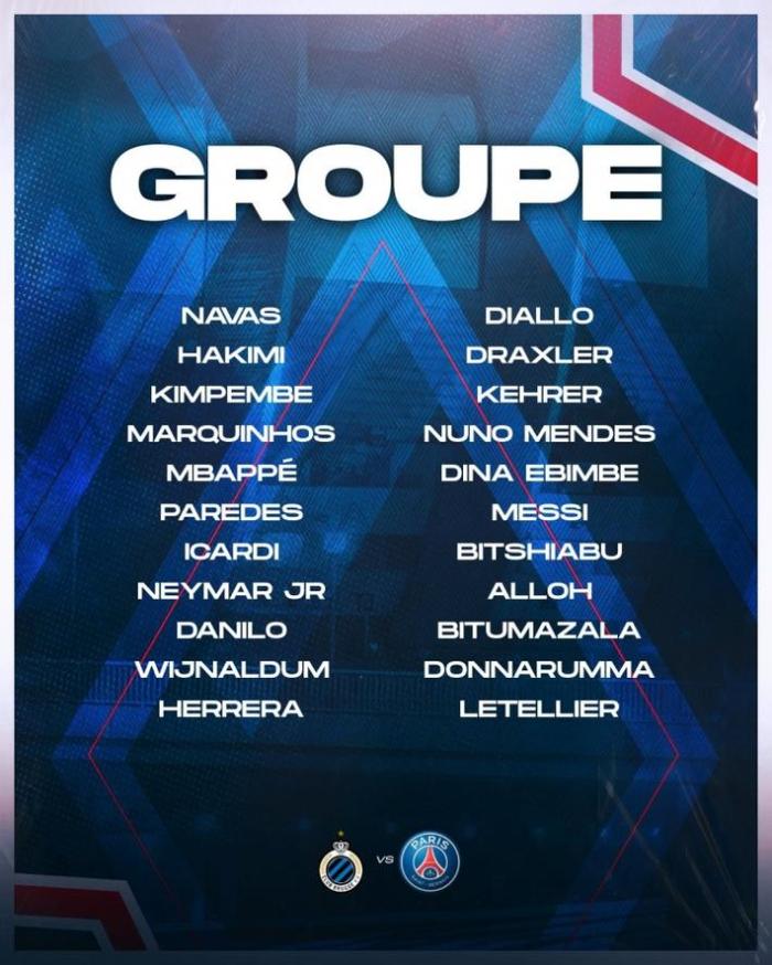 24直播网讯 北京时间9月16日,巴黎将在欧冠小组赛首轮主场迎战布鲁日。赛前,巴黎公布比赛大名单,梅西、内马尔、姆巴佩领衔。
